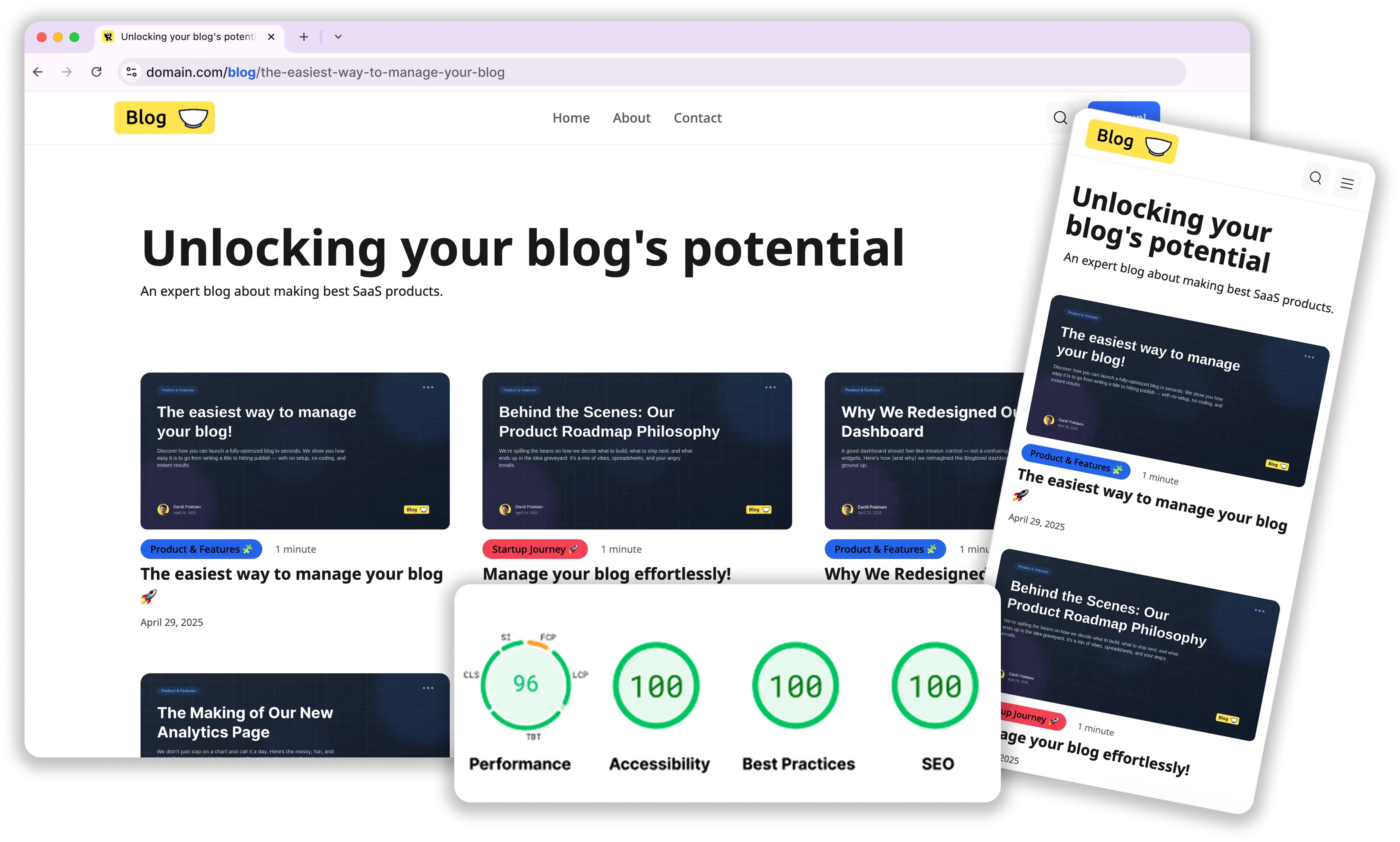 Blogbowl gives you everything you need — fast SEO-optimized templates, built-in newsletter, and analytics. No setup headaches. No code. Just sign up and focus on content.